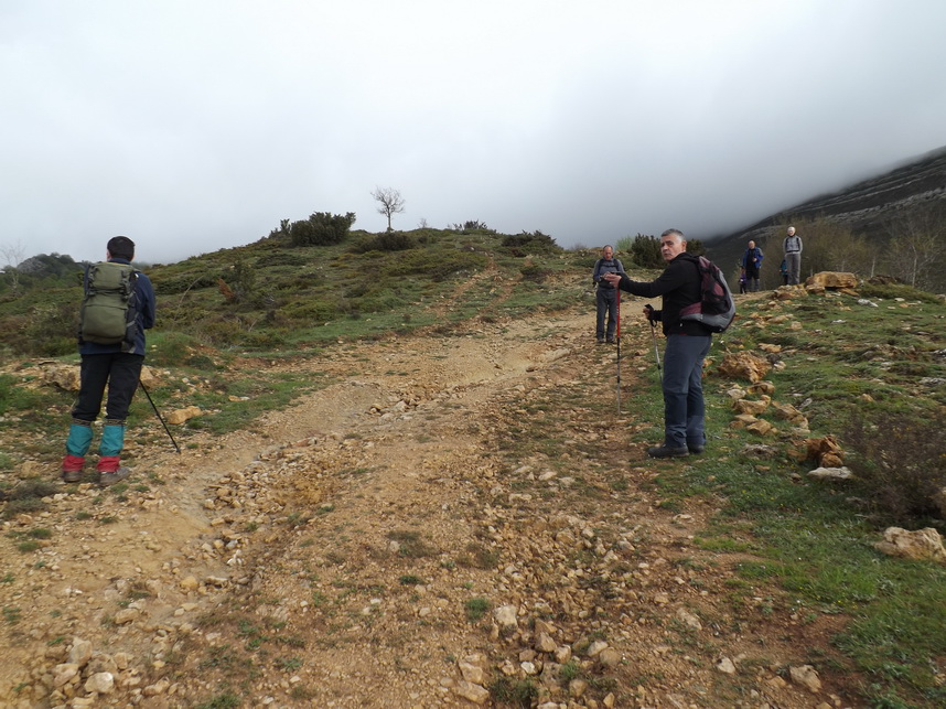 A los pocos metros las marcas del SLC-BU 91 se desvían a la izquierda para bajar por el barranco de Valsorda hacia el despoblado de Obarenes, nosotros continuamos por la pista hasta que un poco antes de llegar al cruce de carreteras tomamos un atajo entre las praderas (
